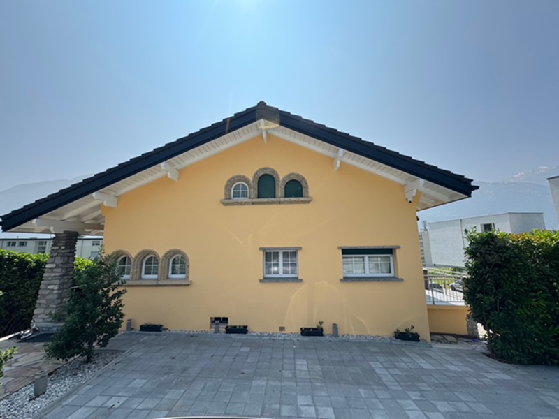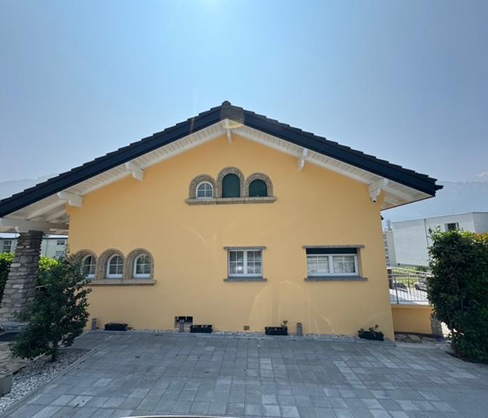 Ces dernières années, nous avons rénové plusieurs bâtiments historiques au centre de Sierre. Sur l’une des maisons du Vieux-Bourg, nous avons fait intervenir un spécialiste pour retrouver l’aspect initial de la bâtisse. Celui-ci s’est concentré sur les façades extérieures, les peintures moulées florales d’influence « Art Nouveau » ont été enduites de peinture minérale à l’aide de pochoirs ajourés. Un travail conséquent qui a permis de retrouver l’ornementation initiale de l’édifice.
